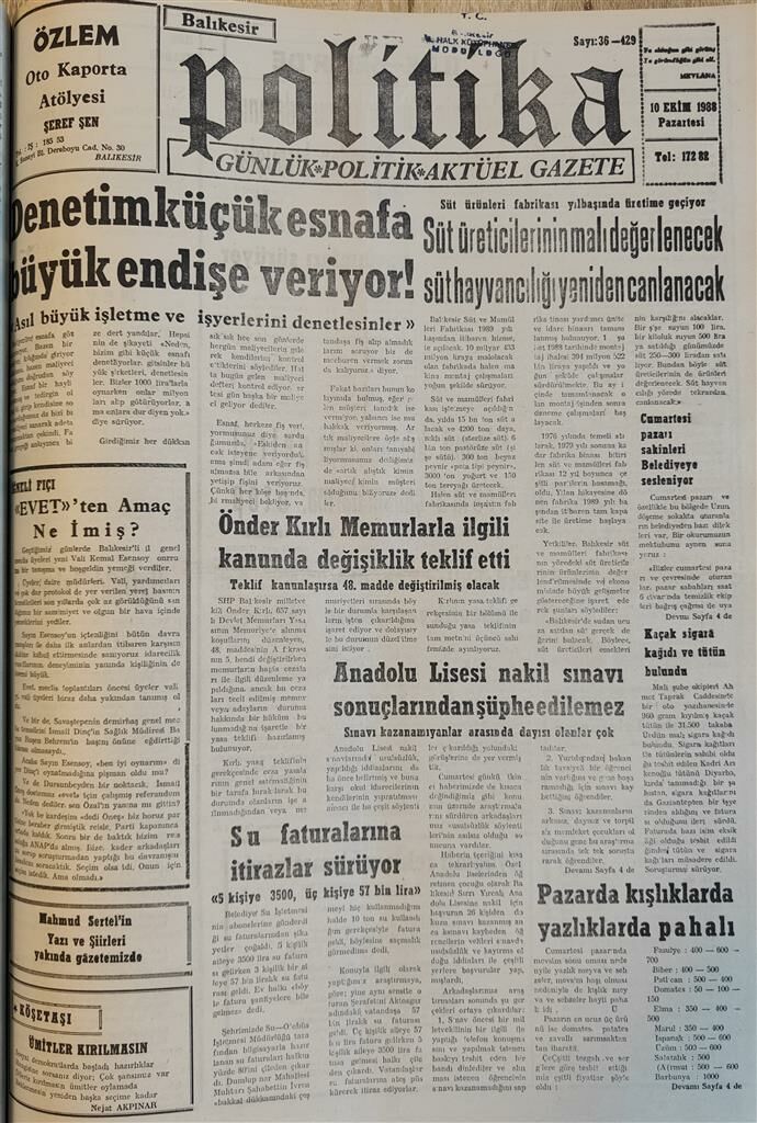 Birinci sayfadaki haber başlıkları: “Süt üreticilerinin malı değerlenecek. Hayvancılık yeniden canlanacak”, “Cumartesi Pazarı sakinleri belediyeye sesleniyor”, “Önder Kırlı memurlarla ilgili kanında değişiklik teklif etti”, “Anadolu Lisesi Nakil Sınavı sonuçlarından şüphe edilemez. Sınavı kazanamayanlar arasında dayısı olanlar çok”, “Kaçak sigara kağıdı ve tütün bulundu”, “Su faturalarına itirazlar sürüyor”, “Pazarda kışlıklar da yazlıklar da pahalı.”