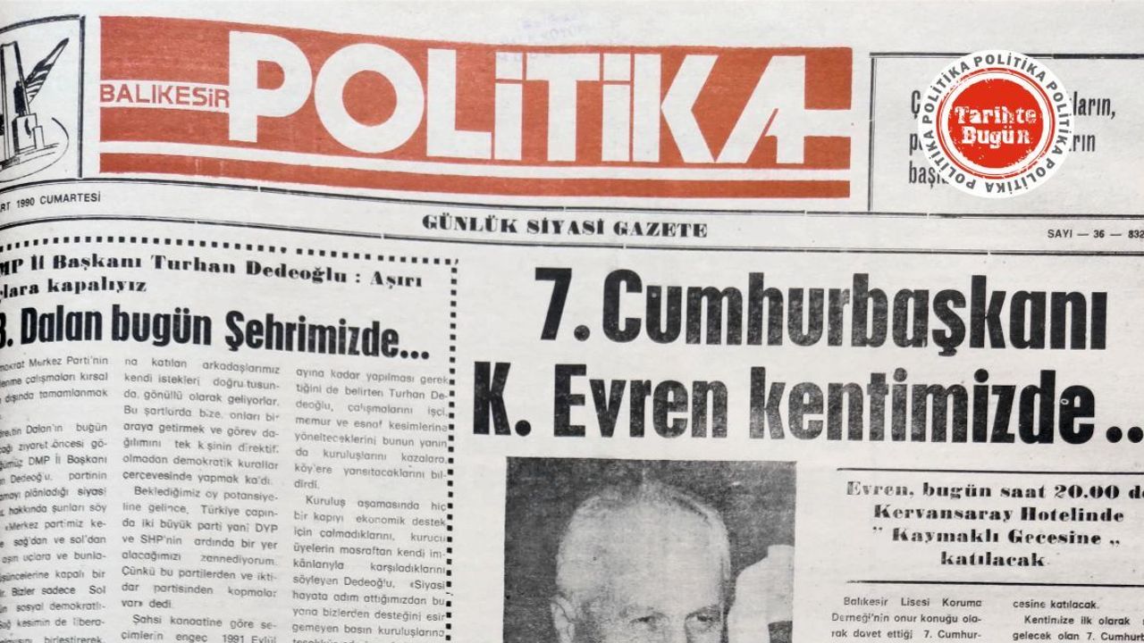 Politika Gazetesi, 10 Mart 1990 Cumartesi günü yayımladığı sayısında, 7. Cumhurbaşkanı Kenan Evren’in Balıkesir Lisesi’nin onur konuğu olarak Balıkesir’e geleceğini manşet haber olarak okurlarına aktarmış. Haberde Kenan Evren’in bir süre sıralarında oturduğu Balıkesir Lisesinin düzenlediği, “Kaymaklı gecesine katılacağını manşet yapmış.