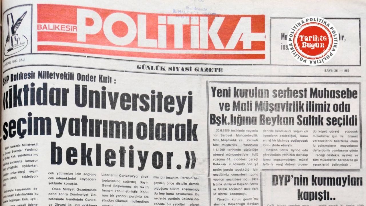 10 Nisan 1990 Salı günü neşredilen Politika Gazetesi, SHP Balıkesir Milletvekili Önder Kırlı’nın Balıkesir’de üniversite kurulması konusunda sessiz kalan iktidar için, “Üniversiteyi seçim yatırımı olarak bekletiyor” sözlerini manşete taşımış. Haberde, Kırlı’nın, “Yakın zamanda ödeneği kaçırıp başka illere kaptıracağız” diye konuşmasına dikkat çekilmiş.