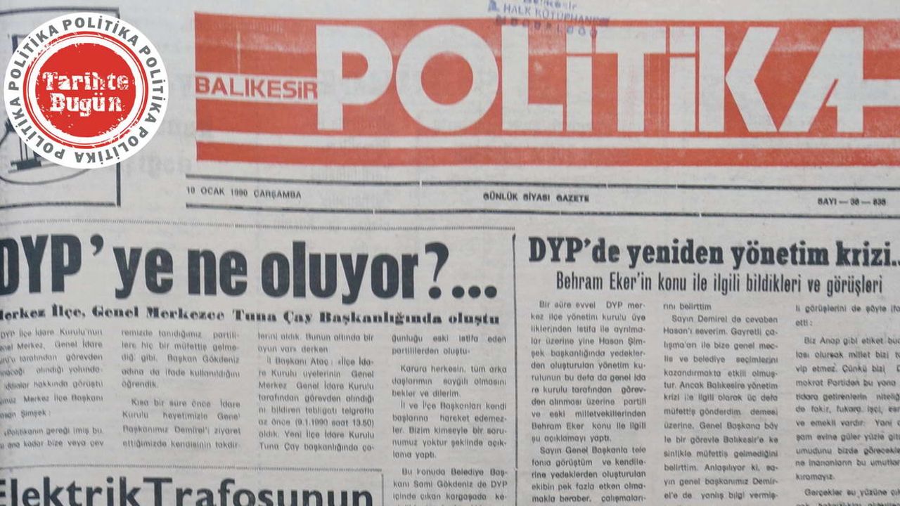 Politika Gazetesi’nin 10 Ocak 1990 Çarşamba günkü manşet haberinde, DYP Merkez İlçe Başkanının görevden alındığı yolundaki söylentileri gündeme getirilmiş. Haberde Hasan Şimşek’in görevden alındığı yerine Tuna Çay’ın getirildiği vurgulanmış.