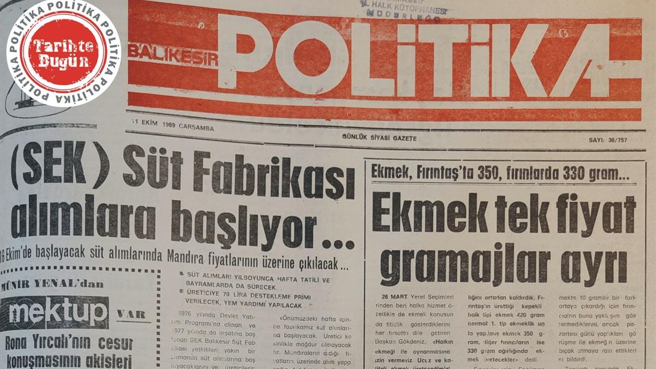 Politika Gazetesi 11 Ekim 1989 Çarşamba günü yayımlanan sayısında, Balıkesir’de açılan SEK Balıkesir Süt Fabrikasının süt alımlarına yakın zamanda başlayacağını, süt fiyatının diğer mandıralardan fazla olacağını alımların cumartesi ve pazar günleri de yapılacağını belirten haberi manşete taşımış Haberde, süt fabrikasının kapasitesi ile ilgili detaylı bilgiler aktarılmış.