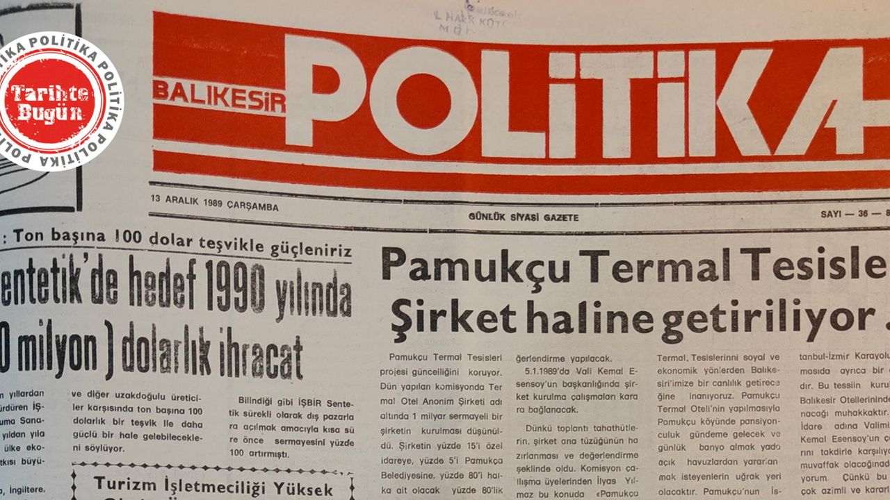 Politika Gazetesi 13 Aralık 1989 Çarşamba günü yayımladığı sayısında, Pamukçu’da kurulacak termal otel için Anonim Şirket kurulmasını manşet haber olarak okurlarına duyurmuş. Politika’nın ikinci manşet haberinde İşbir Sentetik Dokuma Fabrikasının 10 milyon dolarlık ihracatı konu edilmiş.