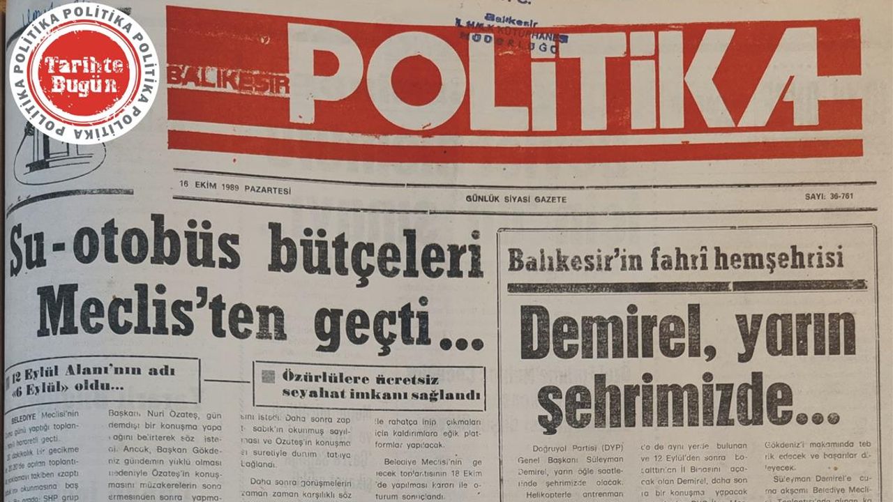 Politika Gazetesi 16 Ekim Pazartesi günü yayımlanan sayısında, Balıkesir Belediye meclisi toplantısını manşet haber olarak okurlarına duyurmuş. Haberde, Su ve Otobüs işletmeleri bütçesinin meclisten geçtiği, 12 Eylül Meydanı isminin 6 Eylül Meydanı olarak değiştirildiği, özürlülere belediye otobüslerinde ücretsiz seyahat hakkı verilmesi kararları alındığı aktarılıyor.