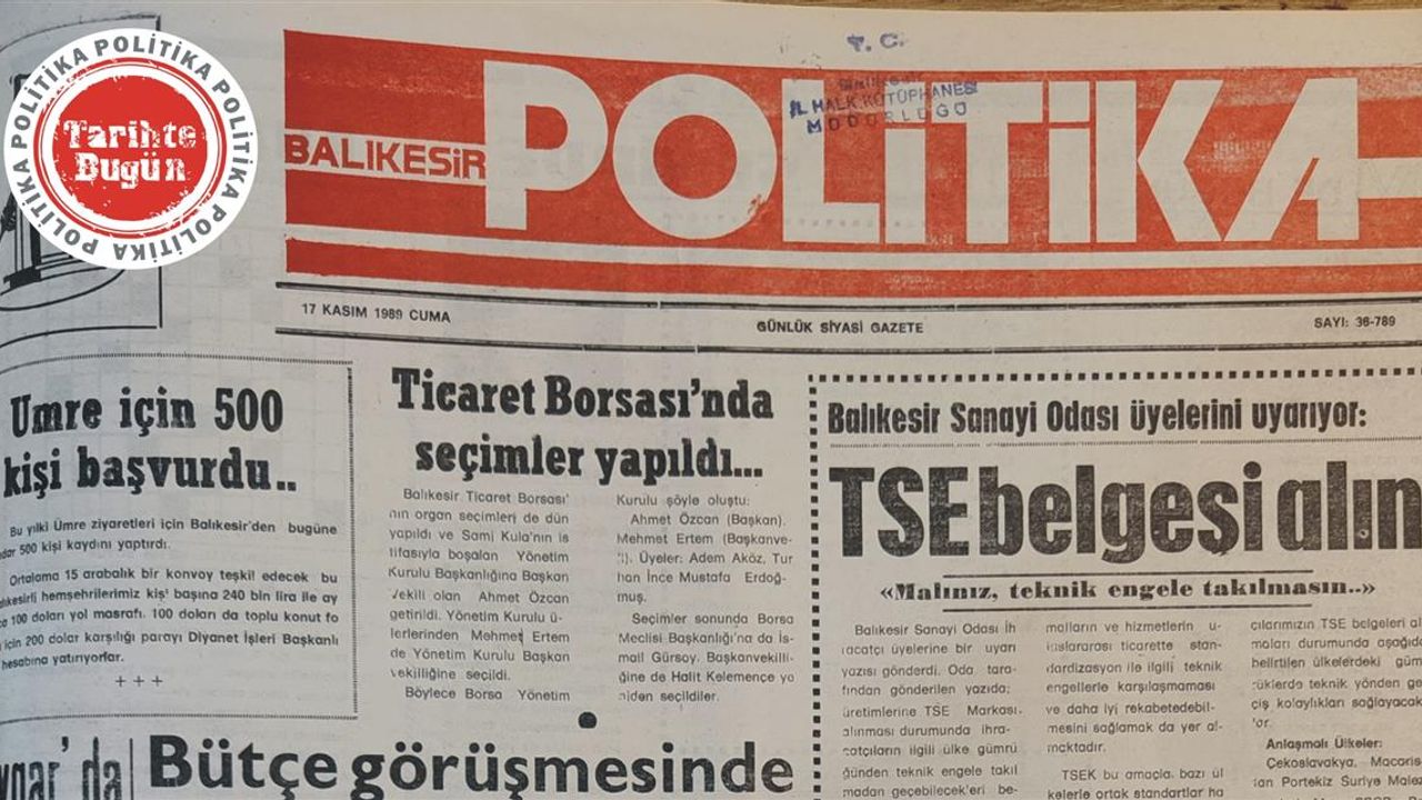 Politika Gazetesi 17 Kasım 1989 Cuma günü yayımladığı sayısında, Balıkesir Sanayi Odası yöneticilerinin üyelerini, “TSE Belgesi alın” uyarısını manşet haber olarak okurlarına duyurmuş. Haberde, TSE belgeli firmaların ihracat yaptıkları ülkelerin gümrüklerinden teknik engele takılmadan geçebileceği vurgulanmış.