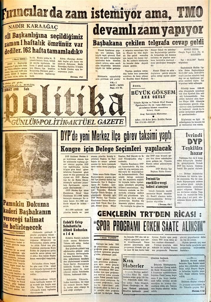 “Ekmek fiyatlarına son yapılan zamlara halk büyük tepki gösterdi. Özellikle dar gelirli vatandaşlar tarafından tüketilen ekmek onların zaten sıkıntılı olan bütçelerine ekstradan büyük bir külfet getirmişti. Hükümetin uyguladığı zam politikası çok yanlıştır. Ekmek bir lüks değildir. Dar gelirli vatandaş için hayati önemi vardır. Bu nedenle hükümetin daha duyarlı olması gerekir. Yapılan zamlara vatandaş kadar fırın işverenleri sendikası da karşı çıkmıştır. Sendika 2’inci başkanı Ahmet Özkal ve arkadaşları başbakanlığa çektikleri telgrafla vatandaşın içinde bulunduğu zor durumu anlatmış ve yapılan zamların kesinlikle durdurulması gerektiğini belirtmişlerdi. Ahmet Özkal ve arkadaşlarına gelen cevap aynen şöyle: ‘Başbakanlık Halkla İlişkiler Daire Başkanlığı’nın 25.12.1987 tarih, 5543-49775 sayılı yazıları ekindeki buğday ve un fiyatlarına yapılan zamlara ilişkin ilgi telgrafınız tetkik ettirilmiştir. Bilindiği üzere 1988-89 alım döneminde uygulanacak alım fiyatları ilan edilmiş bulunmaktadır. İlan edilen hububat alım fiyatları Mayıs 1988 itibariyle uygulamaya girecek olup, mevcut satış fiyatlarımızın da kademeli olarak bu fiyatlar seviyesine getirilmesi gerekmektedir’ denildi.”
