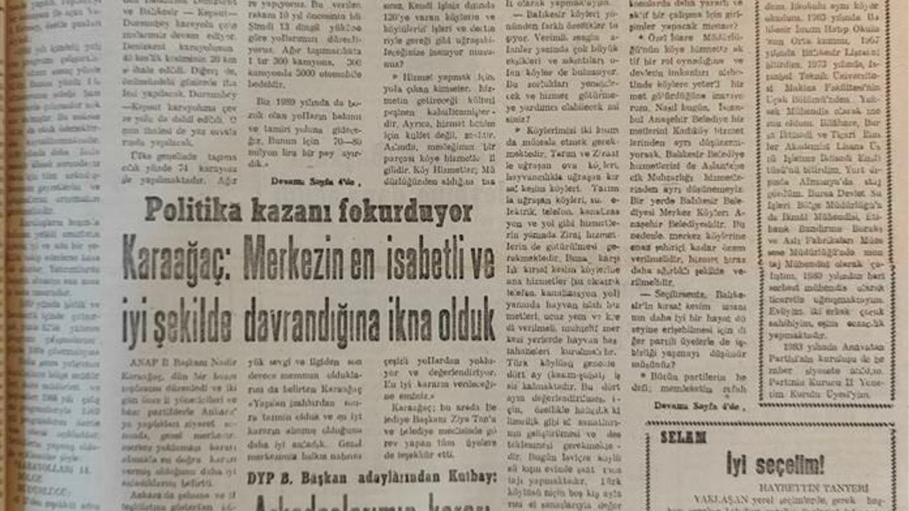 Birinci sayfadaki diğer haber başlıkları: “Politika kazanı fokurduyor. Merkezin en isabetli ve iyi şekilde davrandığına ikna olduk”, “Şehrimizde doğum azaldı ölüm arttı”, “Arkadaşlarımın kararı benim için önemlidir”, “Partilerde transfer başladı”, “S. Gökdeniz esnaflarla temaslar yaptı.”