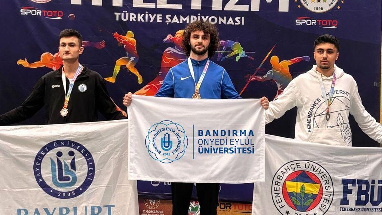 Bandırma Onyedi Eylül Üniversitesi öğrencisi Arda Kurtulan, Türkiye Üniversite Sporları Federasyonu tarafından düzenlenen Türkiye Salon Atletizm Şampiyonası’nda yüksek atlama branşında Türkiye Şampiyonu oldu.