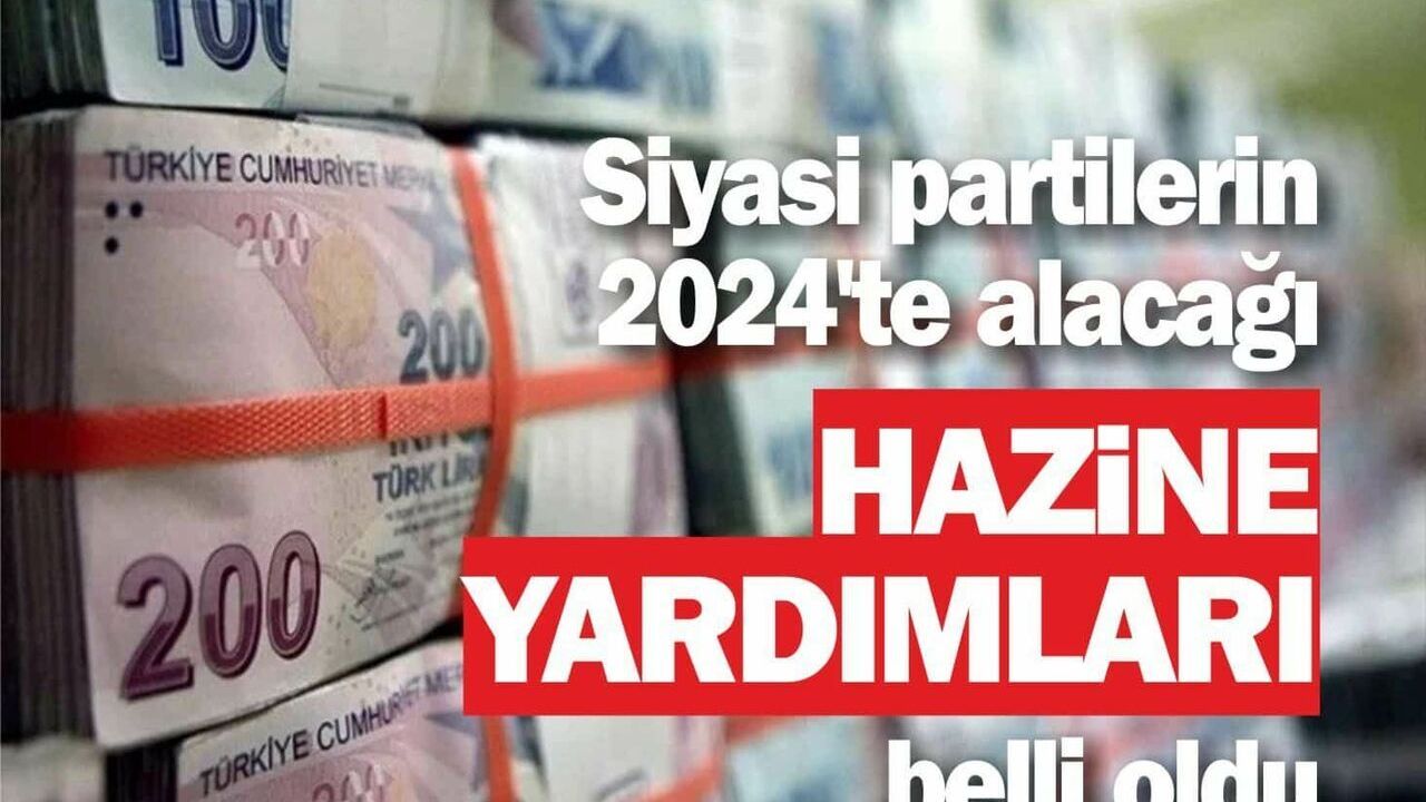 2024 yılı bütçesinin TBMM'ye sunulmasıyla 2024 yılında siyasi partilere yapılacak hazine yardımı da belli oldu. 2023 yılında milletvekili seçimi dolayısıyla normalin 3 katı hazine yardımı alan siyasi partilere 2024 yılındaki yerel seçim dolayısıyla da normalin 2 katı tutarında yardım yapılacak. Ülke barajını aşan 5 siyasi parti toplam 6.7 milyar lira hazine yardımı alacak.