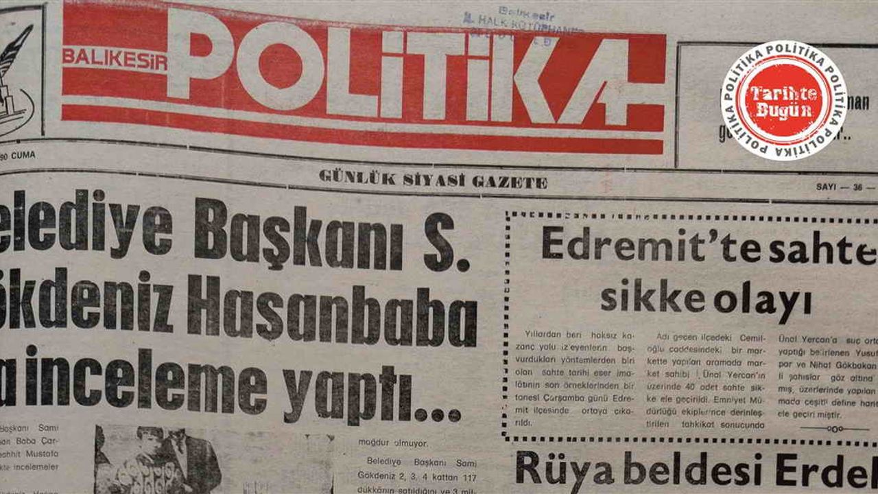Politika Gazetesi, 23 Şubat 1990 Cuma günü yayımlanan sayısında Belediye Başkanı Sami Gökdeniz’in Hasanbaba Çarşısında yaptığı inceleme ile Edremit’te ele geçirilen sikkeler manşet haber olarak okurlarla paylaşılmış. Edremit’te sahte sikke bulunduran bir esnafın gözaltına alındığı vurgulanmış.