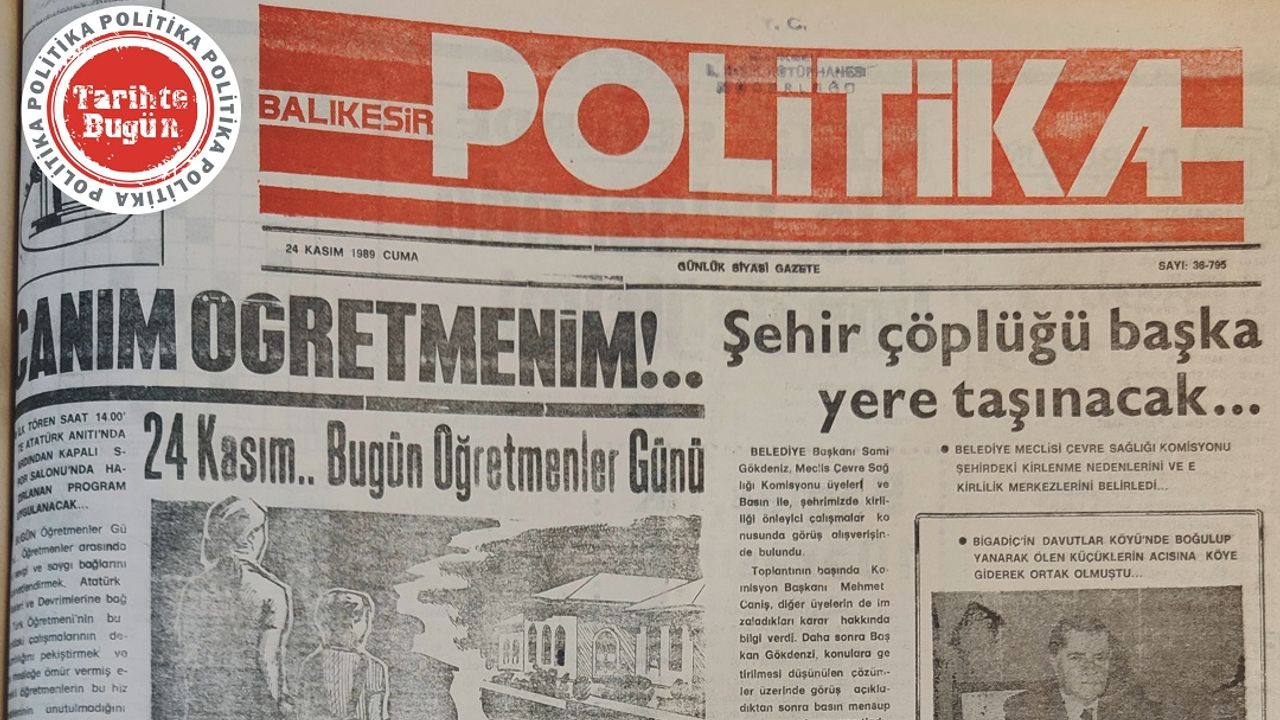 Politika Gazetesi öğretmenler günü olan 24 Kasım 1989 Cuma günü yayımladığı sayısında, “Canım Öğretmenim” başlığı ile öğretmenler gününe atfen eğitim emekçileri ile ilgili haberi manşet haber olarak okurları ile paylaşmış. Haberde öğretmenler gününün emekli olan ve yaşamını yitiren öğretmenlerin unutulmadığını yaşayan öğretmenlerin değerine saygı için gerçekleştirildiğini vurgulamış. Öğretmenler gününde yapılacak etkinliklerde haberde belirtilmiş.