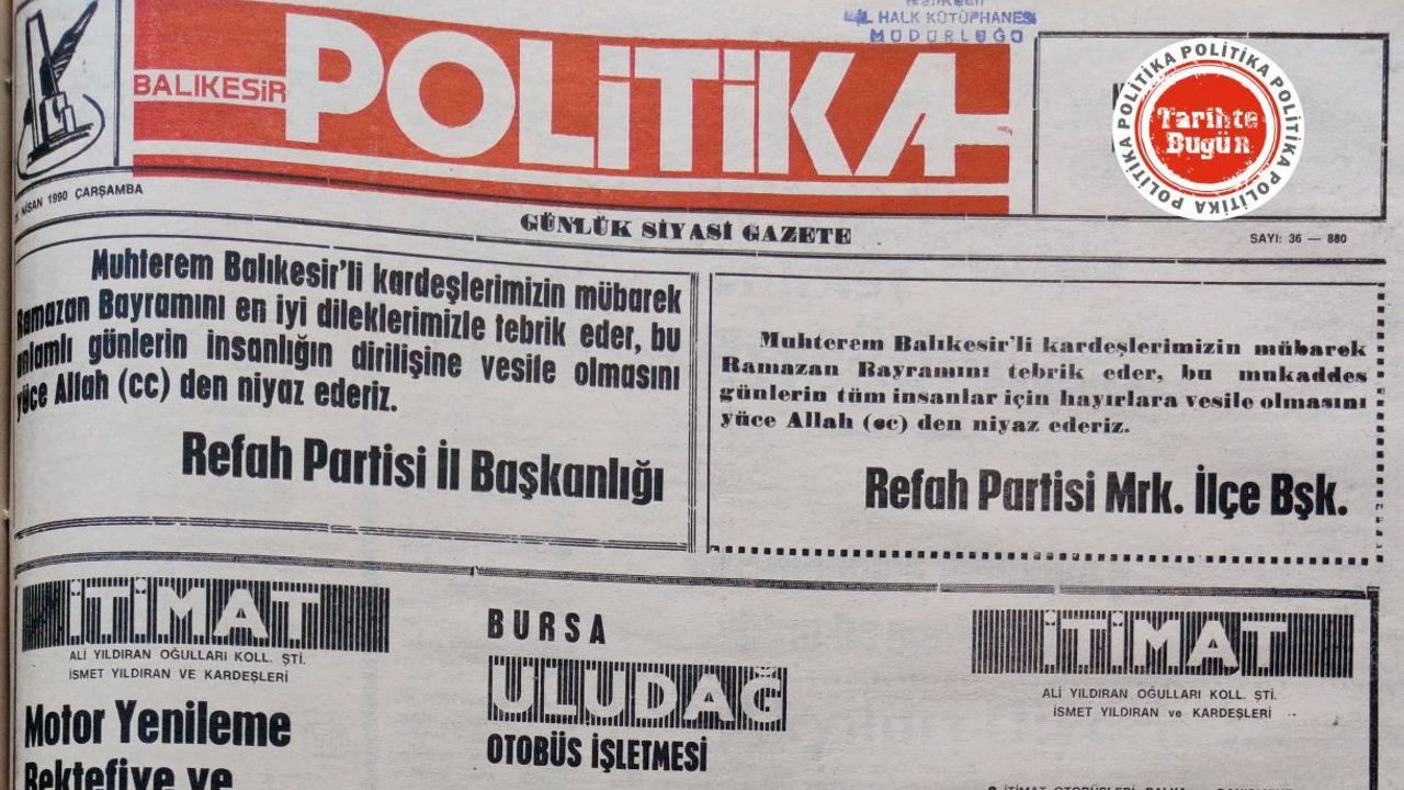 Politika Gazetesi 25 Nisan 1990 Çarşamba günü yayımlanan sayısında birinci sayfayı, Ramazan Bayramı ilanlarına ayırmış.
