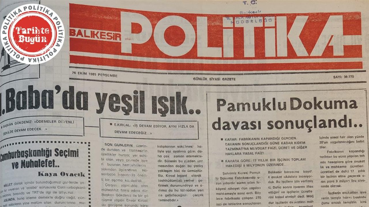 Birinci sayfadaki diğer haber başlıkları: “Pamuklu Dokuma Davası sonuçlandı”, “Balıkesir’de dert bitti mi?”, “Yeşiller maske takacaklar”, “Zorla eve girip dost olmak istemiş”, “Cumhuriyetimizin 66. Yılını kutluyoruz.”