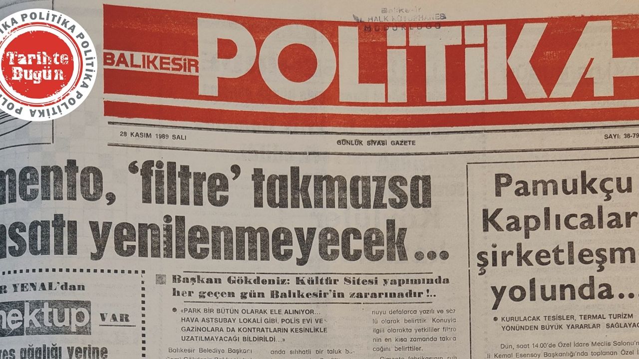 Politika Gazetesi 28 Kasım 1989 Salı günü yayımlanan sayısında, Belediye Başkanı Sami Gökdeniz’in çevre kirliliği ile yaptığı açıklamaları manşet haber olarak okurlarına sunmuş. Haberde çimento fabrikasının bacalarına filtre taktırmaması halinde ruhsatının yenilenmeyeceği vurgulanmış, Kültür park içindeki gazinoların kontratlarının uzatılmayacağına dikkat çekilmiş.