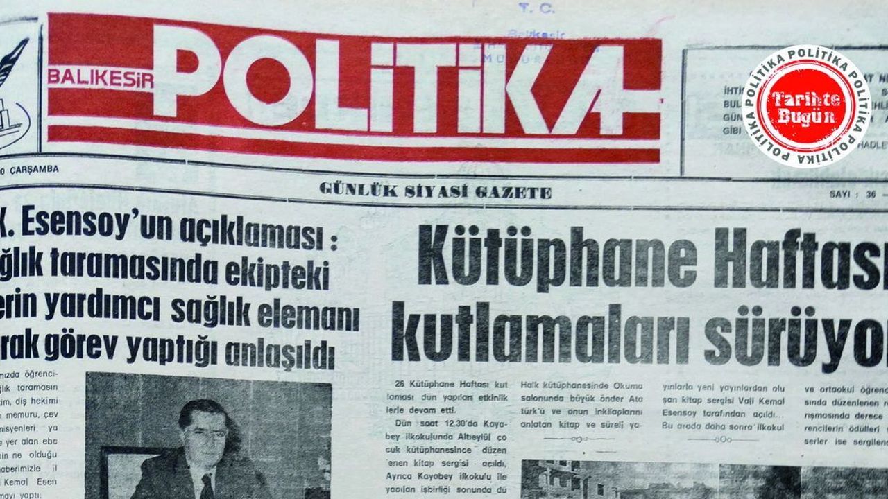 Kütüphane Haftası ile ilgili haberde; “26. Kütüphane Haftası kutlaması dün yapılan etkinliklerle devam etti. Dün saat 12.30’da Kayabey İlkokulunda Altıeylül Çocuk Kütüphanesince düzenlenen kitap sergisi açıldı. Kayabey İlkokulu ile yapılan işbirliği sonunda düzenlenen program izleyicilere sunuldu. Hafta dolayısıyla dün saat 14.30’da Gazi Osman Paşa Halk Kütüphanesinde çocuk bölümünce hazırlanan kitap sergisi açıldı. Daha sonra Gazi Osman Paşa İlkokulu ile Ortaokulunun düzenlediği etkinlik izlendi. Saat 17.30’da Halk Kütüphanesi okuma salonunda büyük önder Atatürk’ü ve onun inkılaplarını anlatan kitap ve süreli yayınlarla yeni yayınlardan oluşan kitap sergisi Vali Kemal Esensoy tarafından açıldı. Daha sonra ilkokul ve ortaokul öğrencileri arasında düzenlenen resim yarışmasında derece alan öğrencilerin ödülleri verildi, eserler sergilendi.”