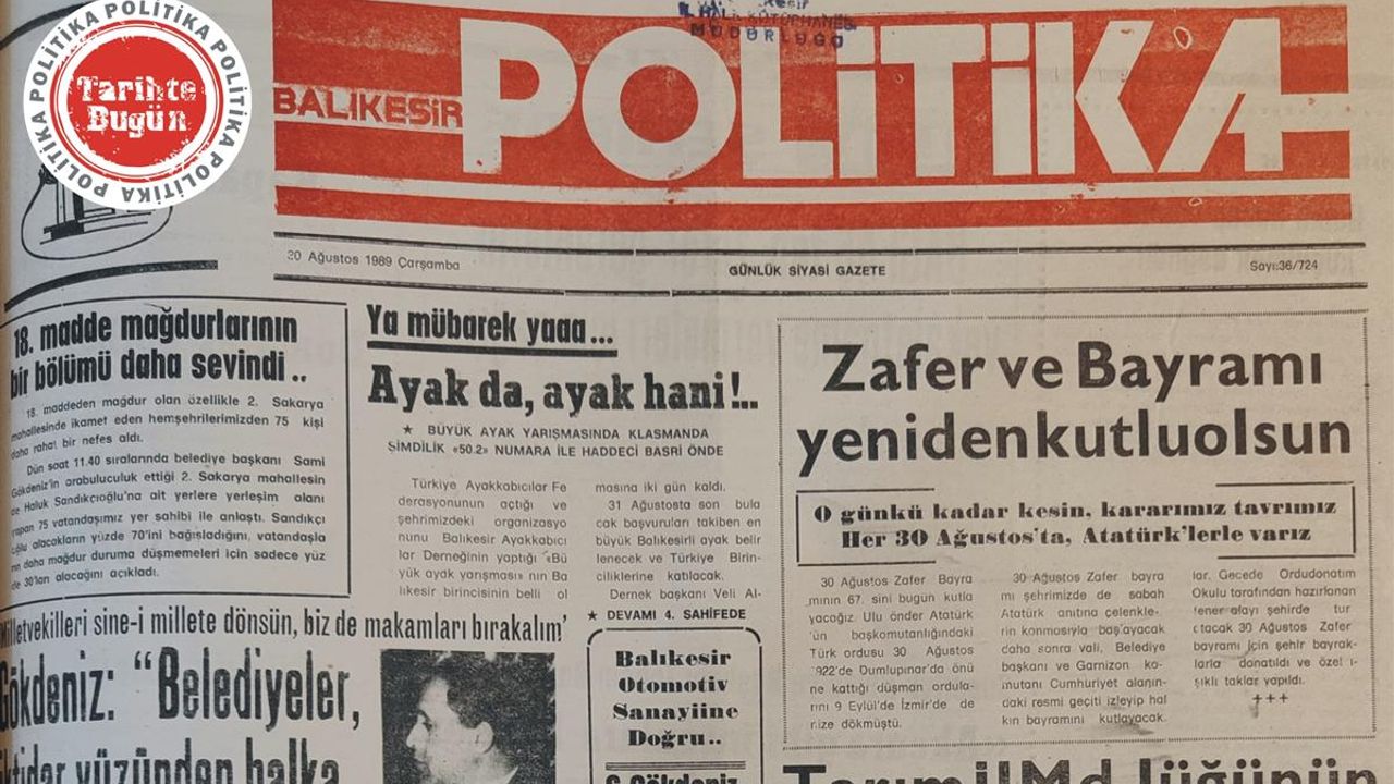 Politika Gazetesi 30 Ağustos 1989 Çarşamba günü yayımladığı sayısında 30 Ağustos Zafer Bayramının 67’inci yıl dönümü nedeniyle konuyla ilgili haberi manşete taşımış. Haberde Zaferle ilgili detaylara yer verilmiş.