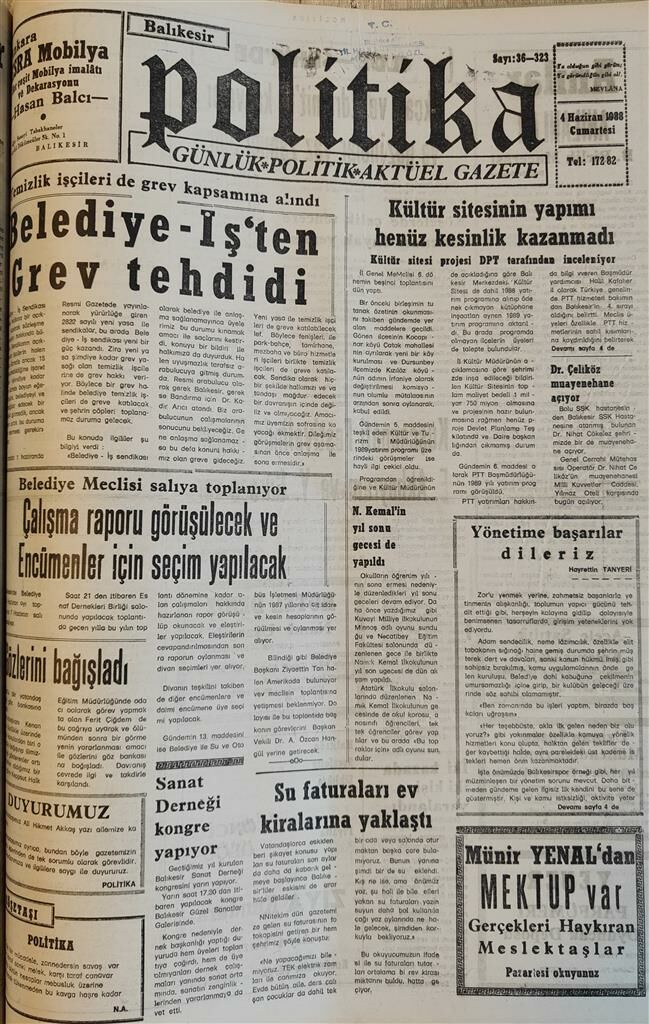 Manşet haberde, “1 Haziranda Resmi Gazetede yayımlanarak yürürlüğe giren 2822 sayılı yeni yasa ile sendikalar bu arada Belediye –iş Sendikası yeni bir güç kazandı. Zira yeni yasaya şimdiye kadar grev yasağı olan temizlik işçilerine grev hakkı veriyor. Böylece bir grev halinde belediye temizlik işçileri de greve katılacak ve şehrin çöpleri toplanamaz duruma gelecek. Bu konuda ilgililer şu bilgiyi verdi. ‘Belediye iş sendikası olarak belediye ile anlaşma sağlanamayınca üyelerimiz bu durumu kınamak amacı ile saçlarını kestirdi. Konuyu bir bildiri ile halkımıza da duyurduk. Halen uyuşmazlık tarafsız arabulucuya gitmiş durumda. Resmi arabulucu olarak gerek Balıkesir, gerek Bandırma için Dr. Kadir Arıcı atandı. Biz arabulucunun çalışmalarının sonucunu bekleyeceğiz. Gene anlaşma sağlanamazsa bu defa yasal hakkımız olan greve gideceğiz. Yeni yasa ile temizlik işçileri de greve katılabilecek’ ifadeleri kullanıldı”