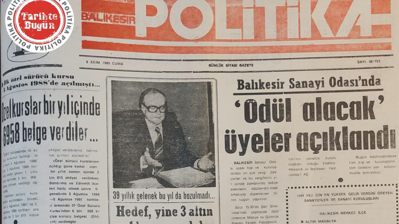 Politika Gazetesi 6 Ekim 1989 Cuma günü yayımlanan sayısında, Balıkesir Sanayi Odası’nın üyelerine yönelik gerçekleştirdiği en yüksek vergi ödeyen kişi kurum ve kuruluşlarla ilgili ödül törenini manşet haber olarak okurlarına duyurmuş. Haberde Balıkesir’de en yüksek vergi ödeyenlerin isimleri açıklanmış.