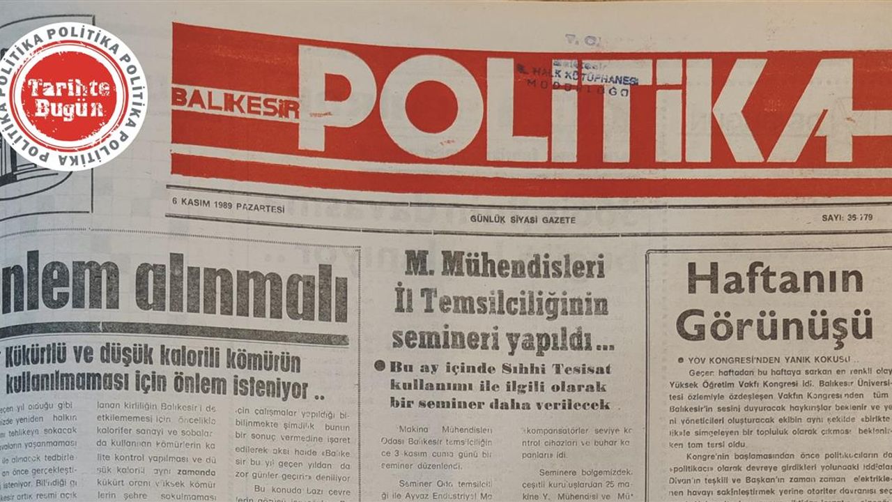 Politika Gazetesi, 6 Kasım 1989 Pazartesi günü yayımladığı sayısında, Balıkesir’de kullanılan kükürt oranı yüksek, kalitesiz kömürün şehre sokulmaması ile ilgili haberi manşet haber olanak okurlarına duyurmuş. Haberde, vatandaşların kükürtlü ve düşük kalorili kömür istemediği, yetkililerin bu soruna çözüm getirmesi gerektiği belirtilirken, önlem alınmazsa, Balıkesir’deki hava kirliliğinin geçen yıllara oranla daha fazla olacağı vurgulanmış.