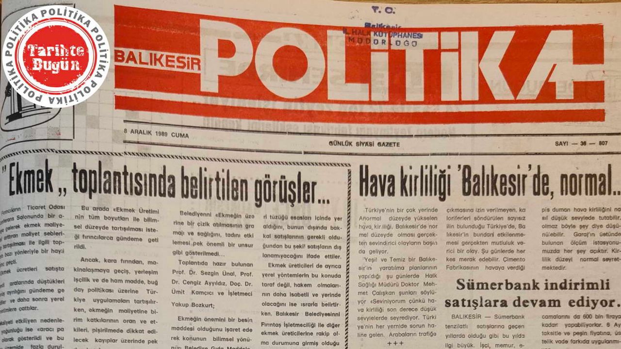 Politika Gazetesi, 8 Aralık 1989 Cuma günü yayımlanan sayısında, Balıkesir’deki hava kirliliğini yansıtan haberi ön plana çıkarmış. Halk Sağlığı Müdürü Dr. Mehmet Çalışkan’ın kirlilikle yaptığı açıklama ön plana çıkarılmış. Balıkesir’in havasının temiz olmasına dikkat çekilmiş.