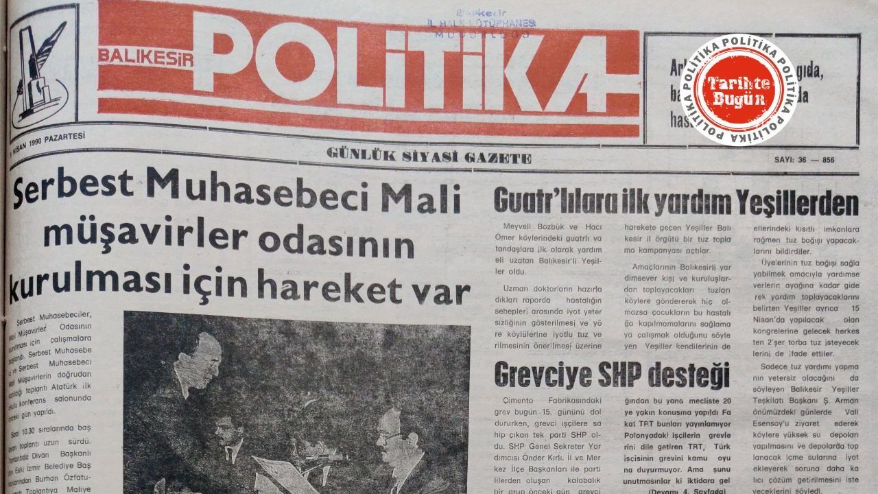 Politika Gazetesi 9 Nisan 1990 Pazartesi günü yayımladığı sayısında, Serbest Muhasebeciler ve Mali Müşavirler Odası’nın (SMMMO) kurulması için Balıkesir’de harekete geçildiğini belirten haberi manşetten vererek okurlarına duyurmuş. Haberde, İzmir Belediyesi eski başkanlarından Burhan Özfatura’nın da oda kurulma çalışmaları için düzenlenen etkinliğe katıldığı, divan başkanlığı yaptığı vurgulanmış.