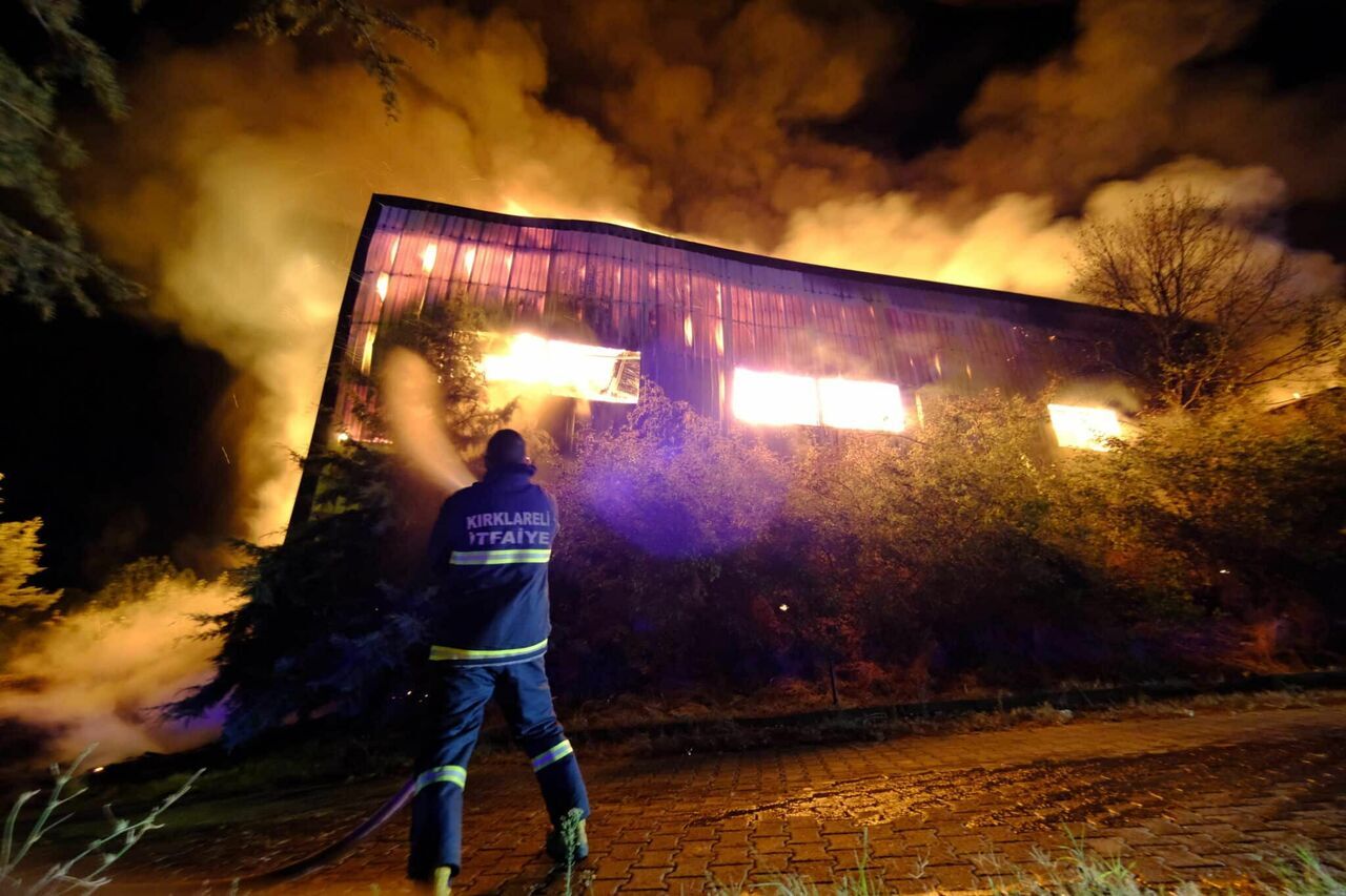 Kırklareli'nde ağaç işleme fabrikasında çıkan yangın itfaiye ekiplerince kontrol altına alınmaya çalışılıyor.