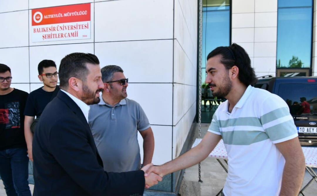 Mehmet Aydemir BAÜ İlahiyat Fakültesi mezuniyet mevlidine katıldı.AK Parti İl Başkanı Mehmet Aydemir; hastane ziyaretinin ardından, Balıkesir Üniversitesi İlahiyat Fakültesi’nin düzenlemiş olduğu mezuniyet mevlidine katıldıktan sonra Rektör Yücel Oğurlu’yu makamında ziyaret etti.