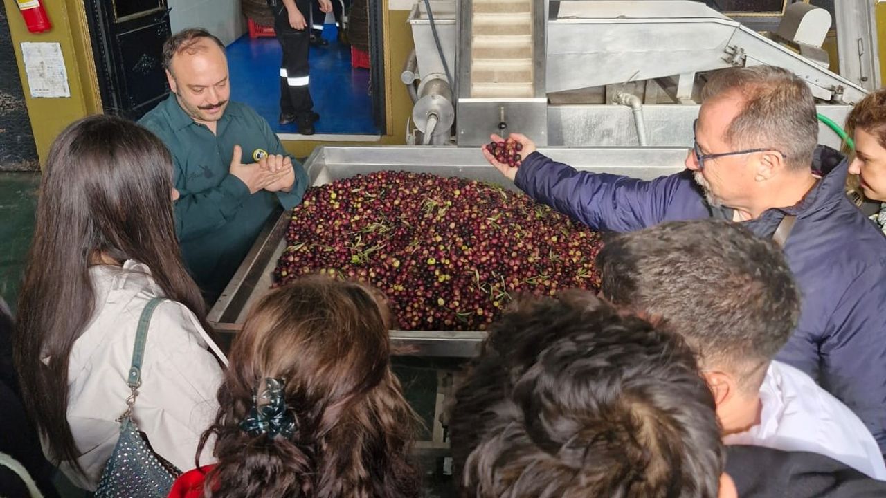 Teknik gezi kapsamında öğrenciler, zeytinyağı üretiminde kullanılan modern hatları yakından inceledi. Zeytinin kabul aşamasından sıkıma, ayrıştırmadan depolama ve paketlemeye kadar tüm süreçler uzmanlar eşliğinde detaylı şekilde aktarıldı.