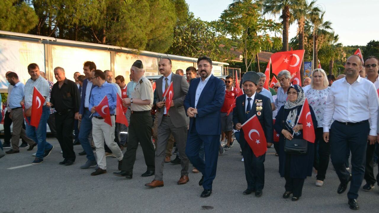 Saat 20.00’de Öğretmenevi önünden ilçe merkezine kadar da Kaymakam Önder Coşğun’un öncülüğünde; Garnizon Komutanı Albay Fevzi Koyuncu, Cumhuriyet Başsavcısı Kürşat Albayrak, Ayvalık Belediye Başkan Vekili Merih Arslan, AK Parti Ayvalık İlçe Başkanı Hakan Kayaalp, MHP Ayvalık İlçe Başkanı Ali Atalay, daire başkanları ve çok sayıda vatandaşla birlikte Demokrasi ve Milli Birlik Yürüyüşü gerçekleştirildi