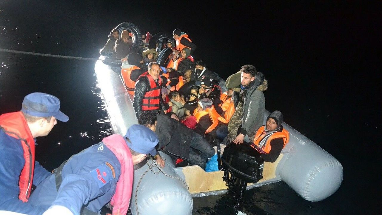 Sahil Güvenlik ekipleri, lastik botta bulunan 16’sı çocuk, 11’i kadın olmak üzere 40 Afganistan uyruklu düzensiz göçmeni yakaladı.