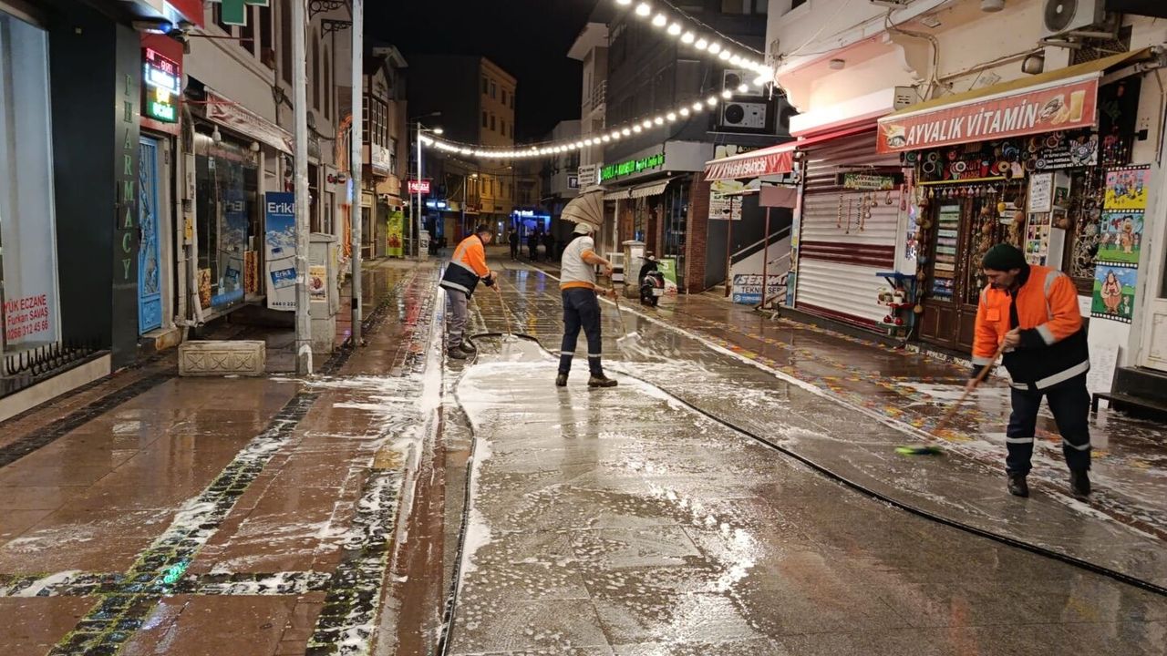 Ayvalık’ın en yoğun noktalarının temiz bir görünüme kavuşmasını sağlayan ekipler, bayram öncesi kent genelindeki temizlik faaliyetlerini planlı bir şekilde sürdürüyor. Çalışmaların, bayram süresince de kentin düzenini korumak amacıyla devam edeceği bildirildi.