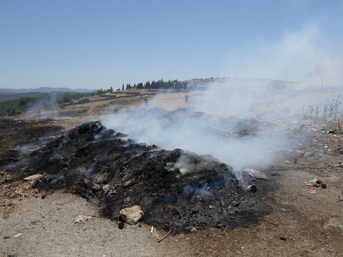 Çamlık Mahallesi'nde ormanlık alana yakın bölgedeki çöp depolama alanında yangın çıktı.