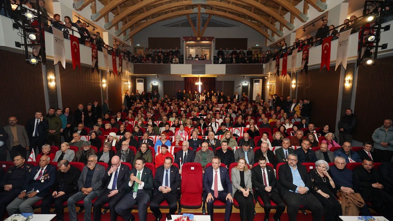 Zeytin Çekirdekleri Korosu’nun dinletisiyle başlayan tören, konuşmaların ardından yerini coşkulu bir finale bıraktı. Protokol üyeleri ve salonu dolduran sanatseverler, ellerinde Türk ve KKTC bayraklarıyla Ayvalık Müzik Derneği eşliğinde "Bir Başkadır Benim Memleketim" şarkısını hep bir ağızdan seslendirdi.