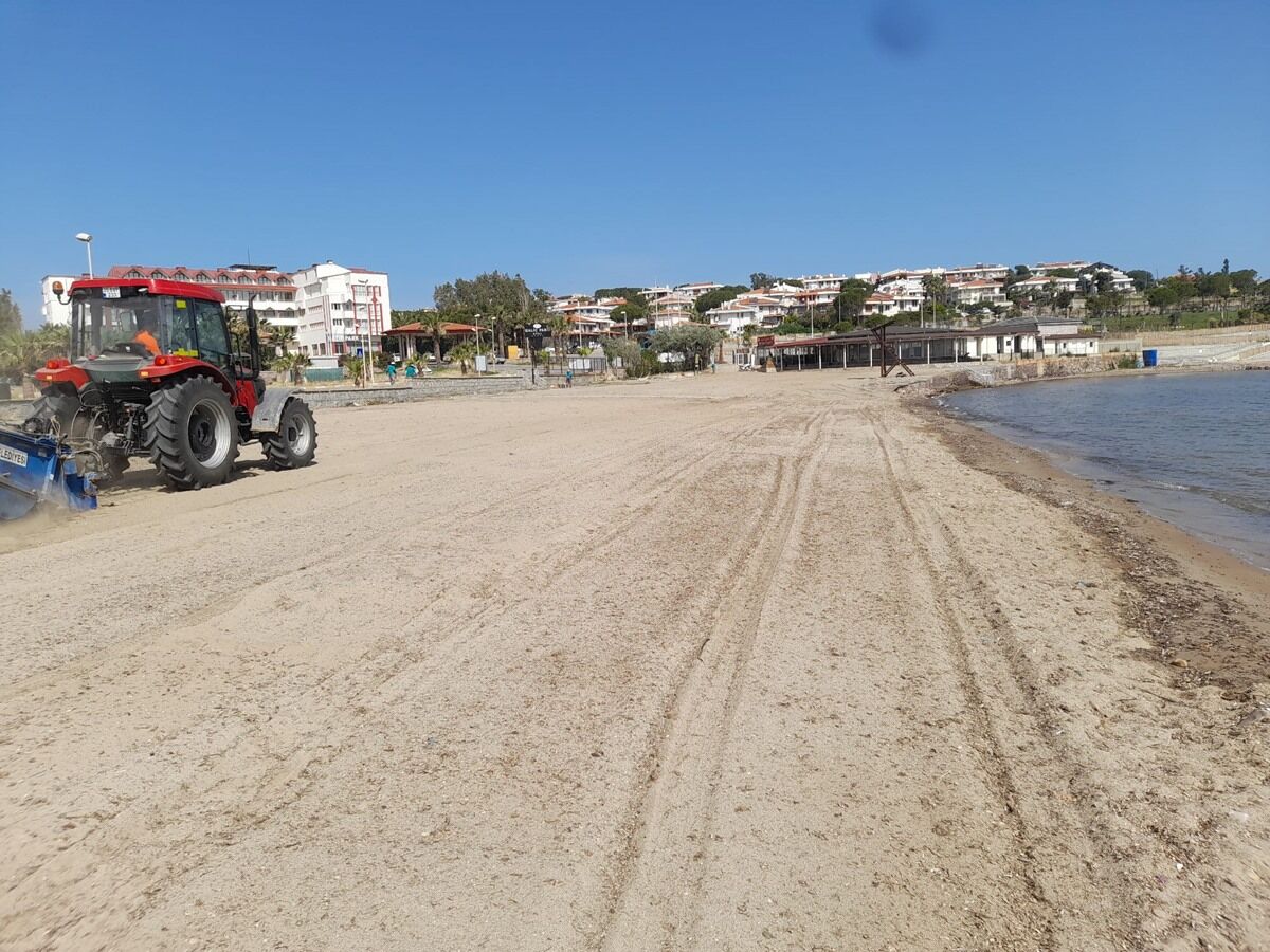 Arka Deniz ve Duba Plajı'nda sürdürülen kum eleme çalışmalarıyla kumsallar halka hazırlanmaya devam ediyor.