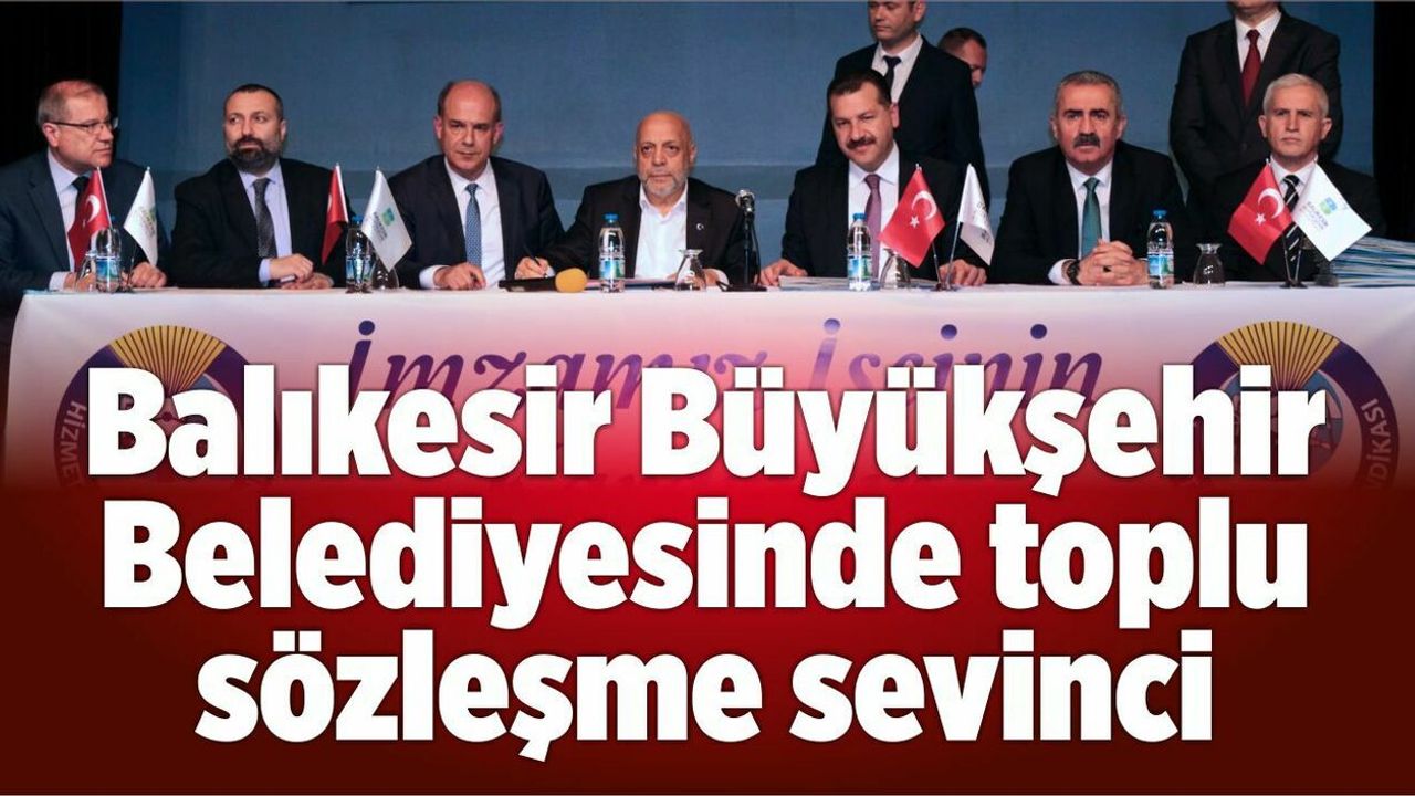 Balıkesir Büyükşehir Belediyesi ve BASKİ’de kadrolu işçilere yönelik toplu iş sözleşmesini Büyükşehir Belediyesi Başkan Vekili Yusuf Hocaoğlu, Karesi Belediye Başkanı ve Cumhur İttifakı Adayı Yücel Yılmaz, Hizmet-İş ve HAK-İŞ Genel Başkanı Mahmut Arslan tarafından imza altına alındı.