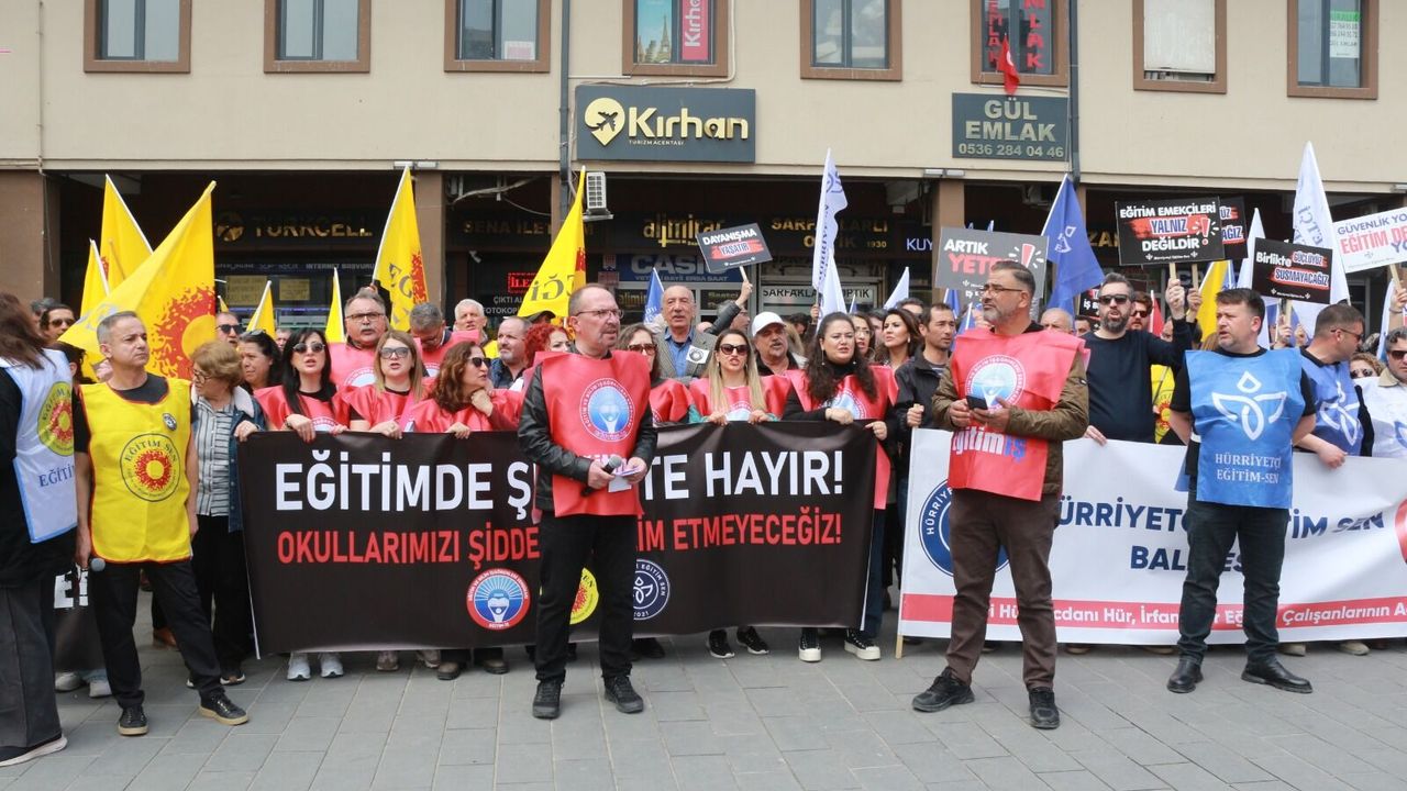 Eğitim-İş, Eğitim-Sen ve Hürriyetçi Eğitim-Sen şubeleri, Ali Hikmet Paşa Meydanı’nda düzenledikleri ortak basın açıklamasıyla okulların "savaş alanına" dönmesine sert tepki gösterdi.