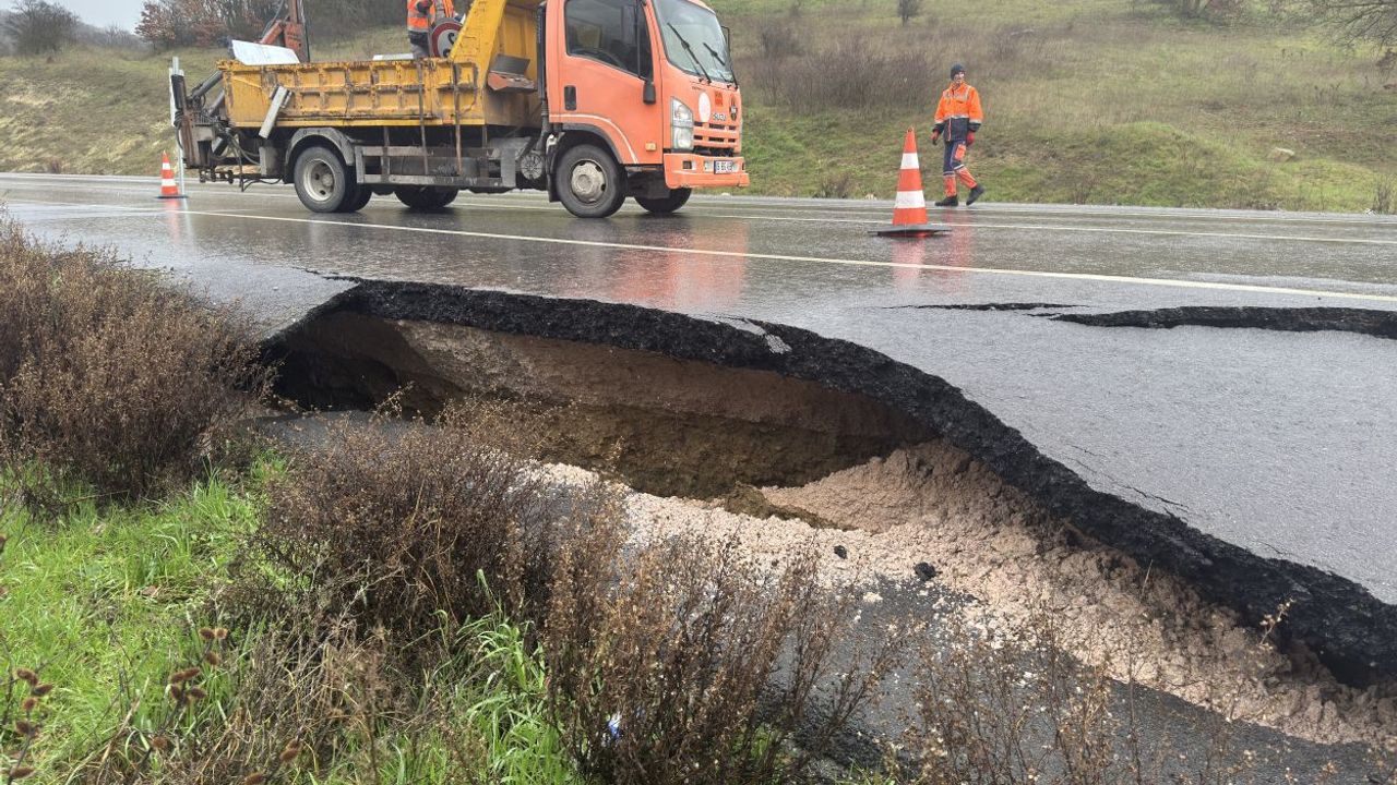 Kocabıyıklar Mahallesi yakınlarında yaklaşık 100 metrelik bölümde yarıklar oluştu. Sürücülerin durumu bildirmesi üzerine ekipler bölgeye sevk edildi. Yağışın sürdüğü alanda trafik kontrollü olarak tek şeritten veriliyor.