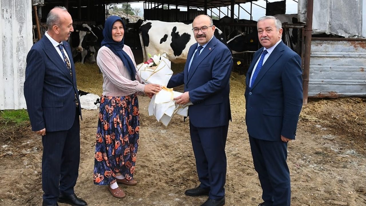 Balıkesir Valisi İsmail Ustaoğlu, 15 Ekim Dünya Kadın Çiftçiler Günü dolayısıyla Karesi ilçesine bağlı Büyükpınar Mahallesi’nde üretim yapan girişimci kadın çiftçi Kadriye Gezgin’in süt çiftliğini ziyaret etti.
