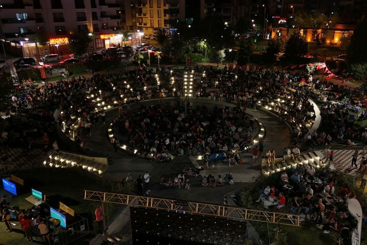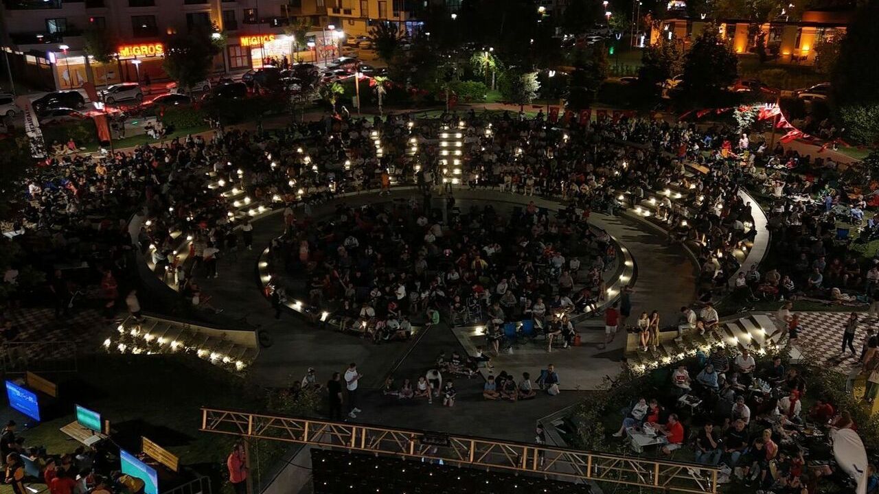 Balıkesir'de vatandaşlar, Çekya-Türkiye milli maçını Avlu Balıkesir Yaşam Merkezi'nde kurulan dev ekrandan büyük bir coşkuyla izledi.