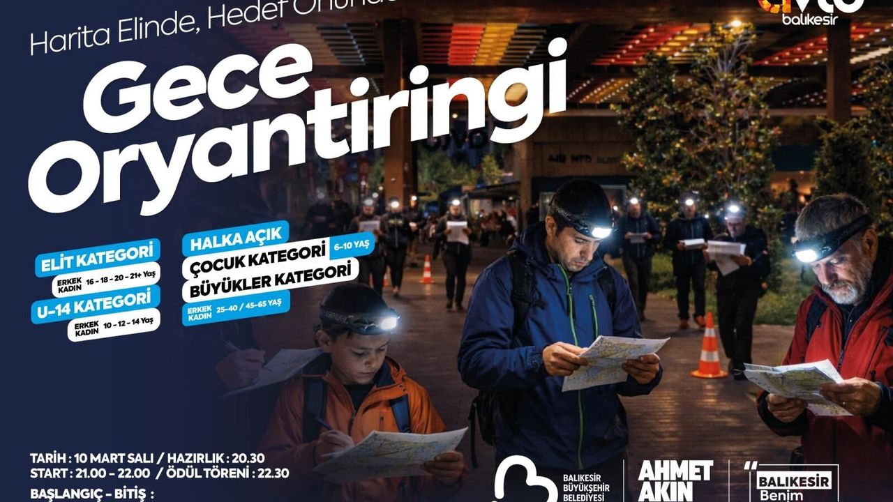 Balıkesir Büyükşehir Belediyesi Gençlik ve Spor Hizmetleri Dairesi Başkanlığı, spor ve heyecan dolu bir etkinliğe ev sahipliği yapmaya hazırlanıyor. “Harita elinde, hedef önünde” sloganıyla düzenlenen Gece Oryantiringi, Avlu Yaşam Merkezi’nde hem profesyonel sporcuları hem de vatandaşları bir araya getirecek.