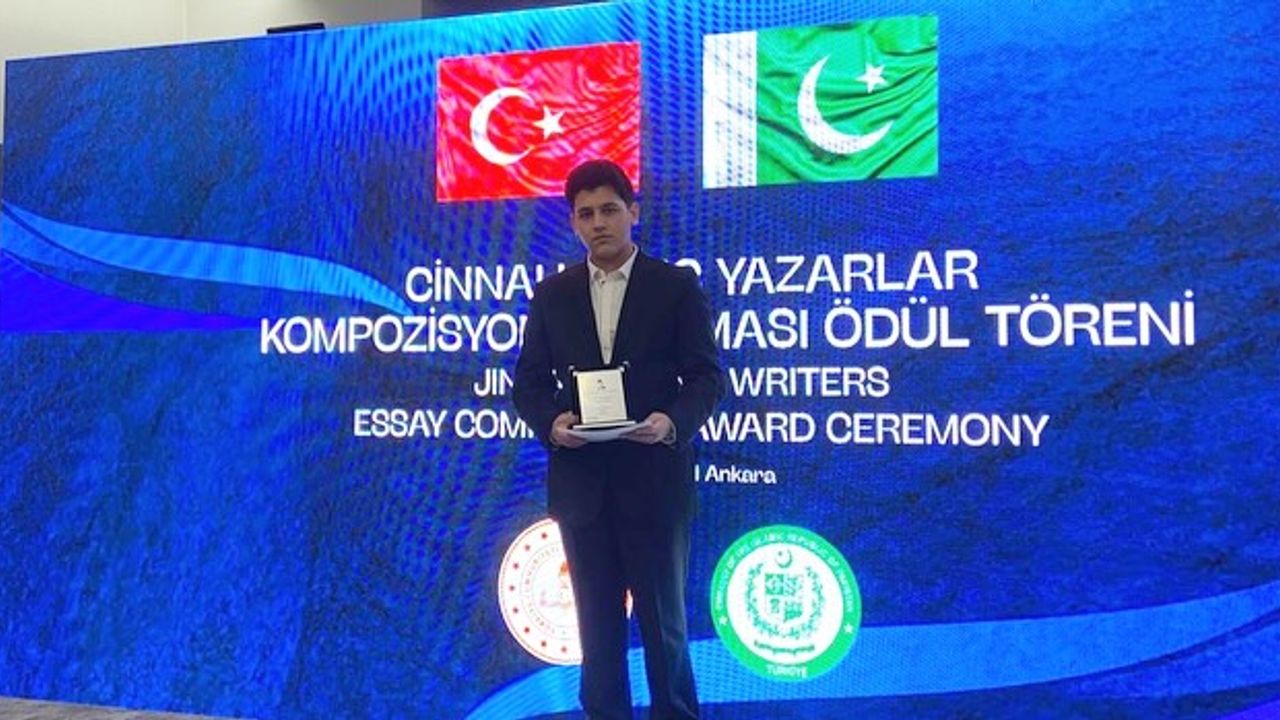 Genç öğrenci ödülünü; Pakistan Büyükelçisi Yusuf Cüneyd, Milli Eğitim Bakan Yardımcısı Celile Eren Ökten ve MEB Avrupa Birliği ve Dış İlişkiler Genel Müdürü Ünal Eryılmaz’ın katıldığı programda aldı.