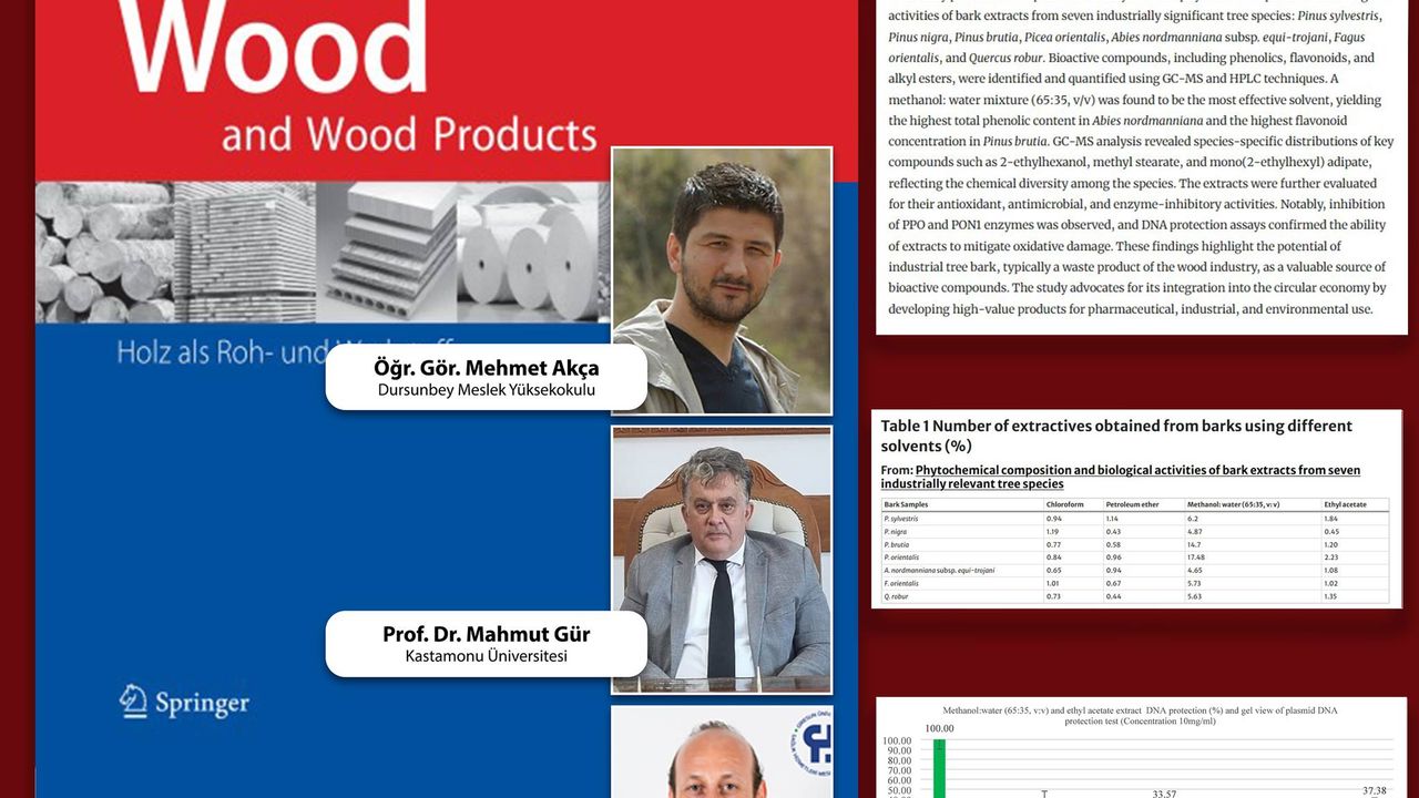 Balıkesir Üniversitesi (BAÜN) Dursunbey Meslek Yüksekokulu Ormancılık Bölümü’nden Öğr. Gör. Mehmet Akça’nın da yer aldığı akademik ekip tarafından yürütülen araştırmada, endüstriyel açıdan değer taşıyan yedi farklı ağaç türünün kabuk ekstraktları detaylı biçimde analiz edildi.