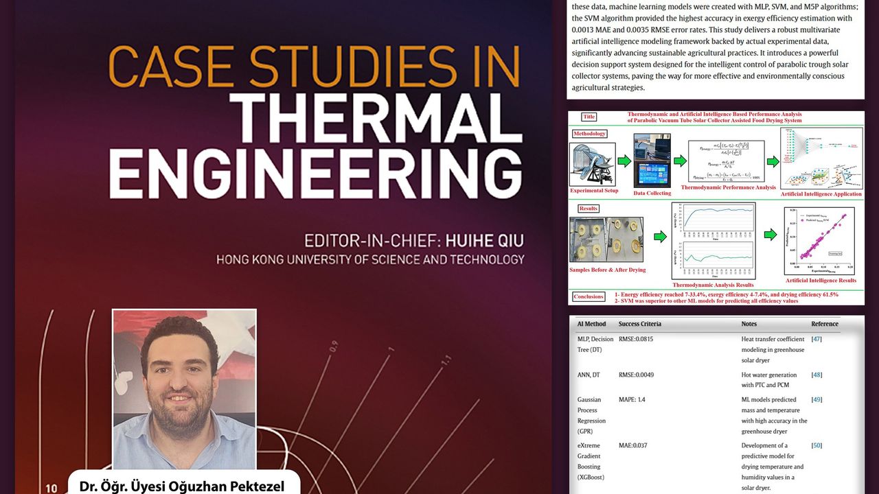 Fırat Üniversitesi’nden Prof. Dr. Ebru Akpınar, Doç. Dr. Mehmet Daş ve Tokat Gaziosmanpaşa Üniversitesi’nden Dr. Öğr. Üyesi Mithat Şimşek ile ortak yürütülen “Thermodynamic and Artificial Intelligence-Based Performance Analysis of Parabolic Vacuum Tube Solar Collector Assisted Greenhouse Drying System” başlıklı makale, alanının en saygın yayınları arasında gösterilen Q1 kategorisindeki Case Studies in Thermal Engineering dergisinde yayımlandı.