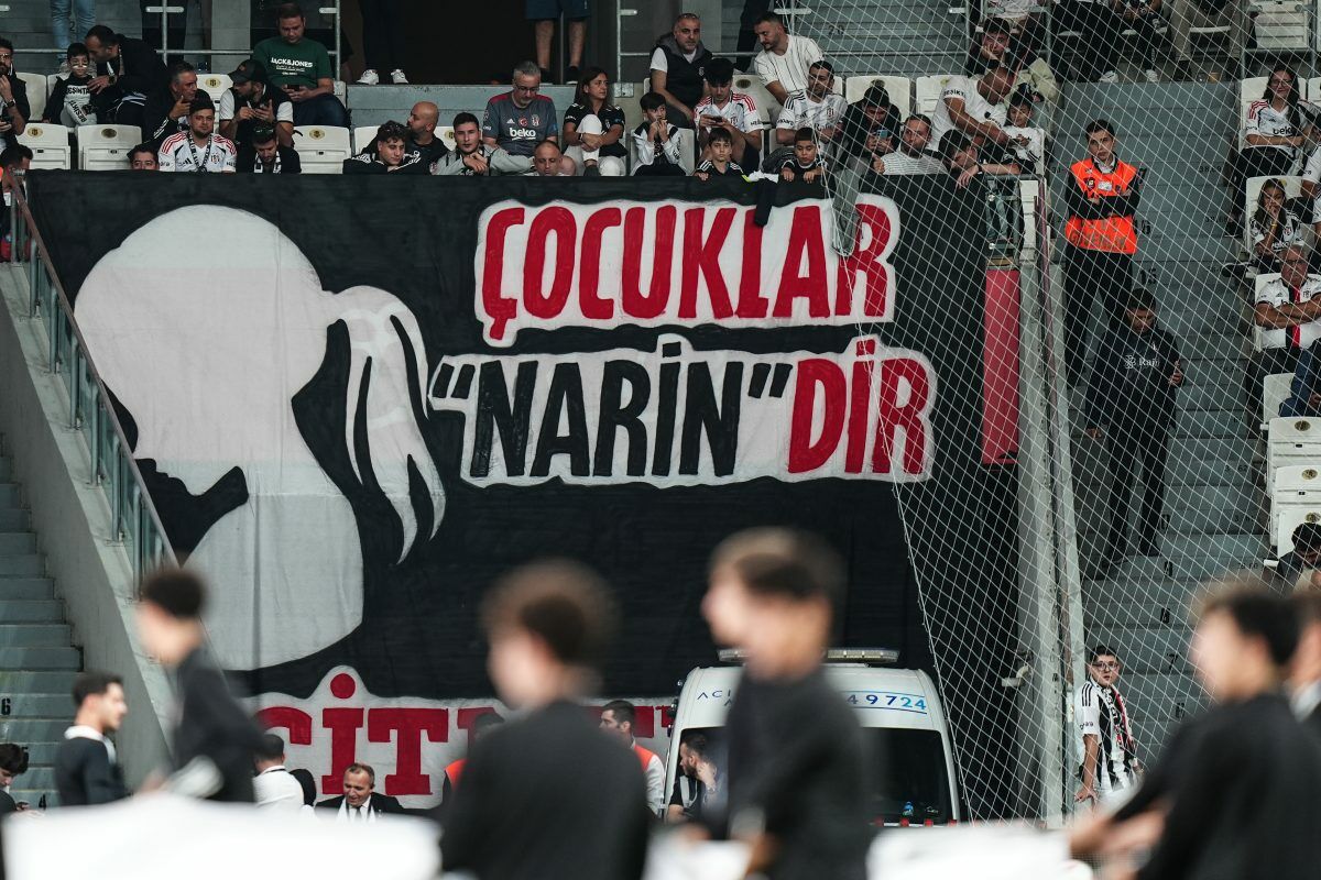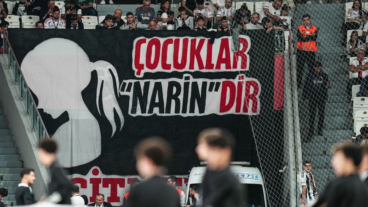 Trendyol Süper Lig'in 6. haftasında Beşiktaş ile İkas Eyüpspor takımlarının Tüpraş Stadı'nda karşılaşmasının öncesinde Beşiktaş taraftarları tarafından,Diyarbakır'da kaybolduktan sonra cansız bedenine ulaşılan 8 yaşındaki Narin Güran için pankart asıldı.