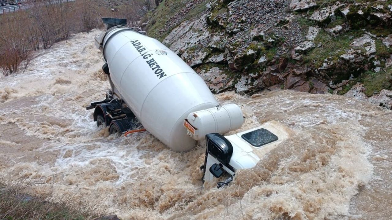 Hazo bölgesinde seyir halindeki Engin Aras (E.A.) idaresindeki beton mikseri, sürücüsünün direksiyon hakimiyetini kaybetmesi sonucu metrelerce yükseklikten dereye uçtu. Kazanın ardından araçtan fırladığı ve akıntıya kapıldığı değerlendirilen sürücüden haber alınamıyor.