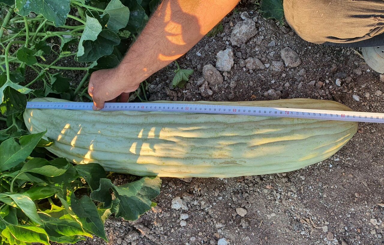 Manisa'nın Demirci ilçesinde, 83 santimetre uzunluğunda acur yetiştirildi.