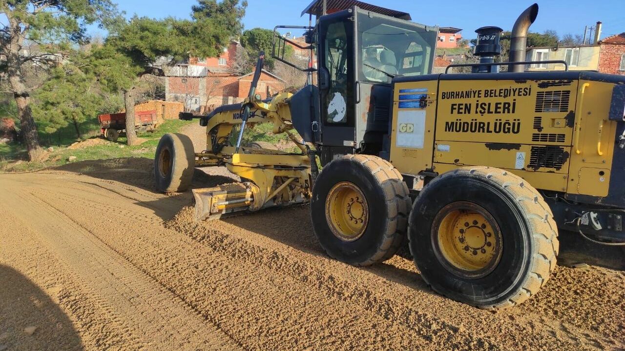 menfez yapımı yapan Burhaniye Belediyesi, malzemeli yol yapımı ile köylüye rahat bir nefes aldırdı.