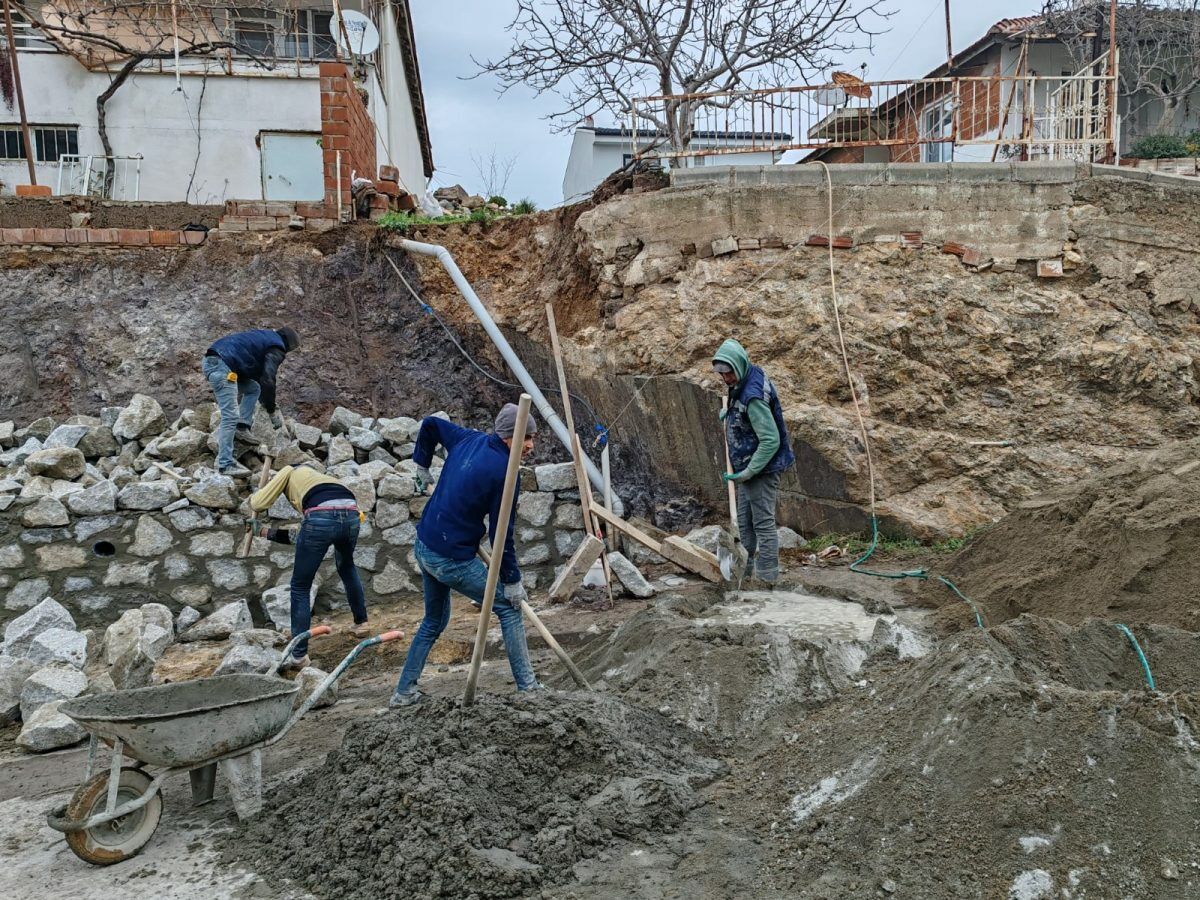 malzeme ile düzenlenirken, yıkılan istinat duvarı da onarıldı.