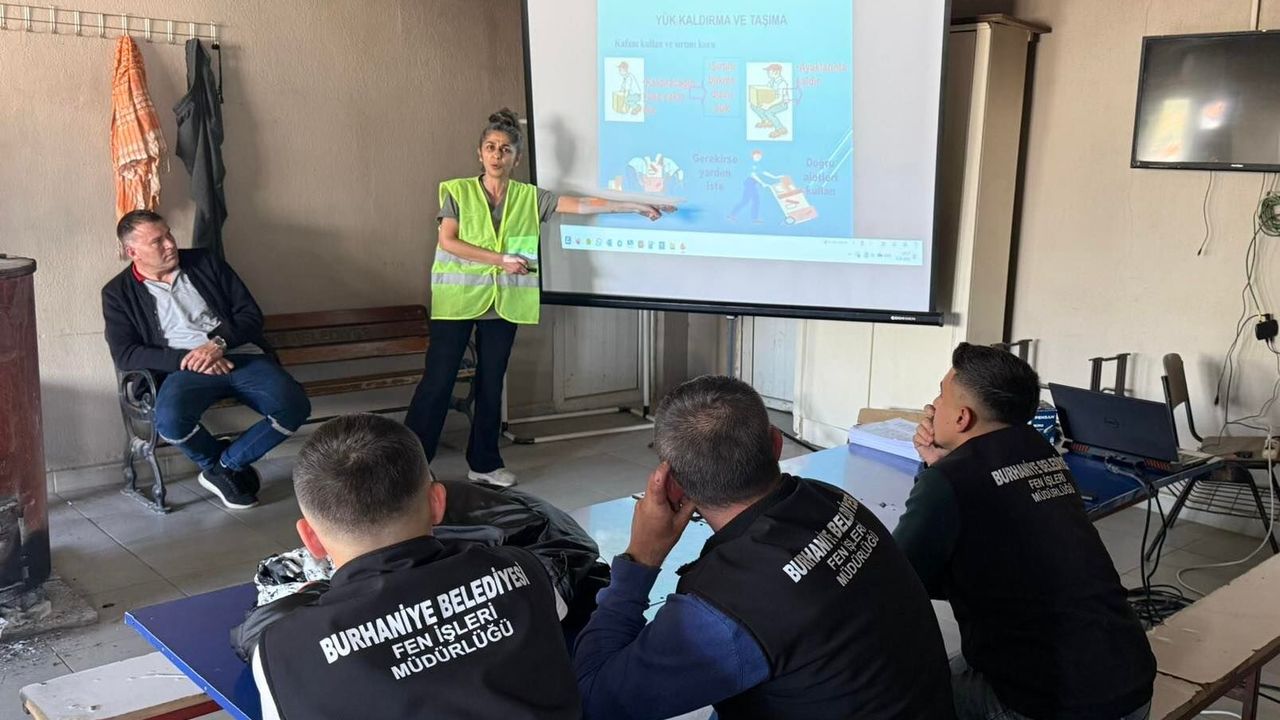 Sağlık İşleri Müdürlüğü bünyesinde görev yapan İş Güvenliği Uzmanı ve İş Yeri Hekimi, sahadaki en yoğun birimlerden biri olan Fen İşleri Müdürlüğü personeline kapsamlı bir eğitim verdi.