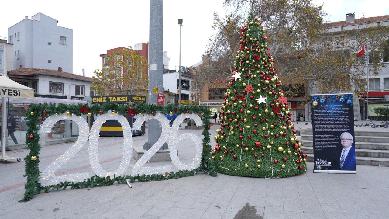 Cumhuriyet Meydanı ve İskele Meydanı’na kurulan yılbaşı ağaçları ve 2026 yazısı ile birlikte Başkan Ali Kemal Deveciler’in yeni yıl mesajının yer aldığı panolar, Ali Çetinkaya Caddesi ve Burhaniye Belediyesi Hizmet Binası çevresinde yapılan süslemelerle ilçe adeta ışıklarla donatıldı.