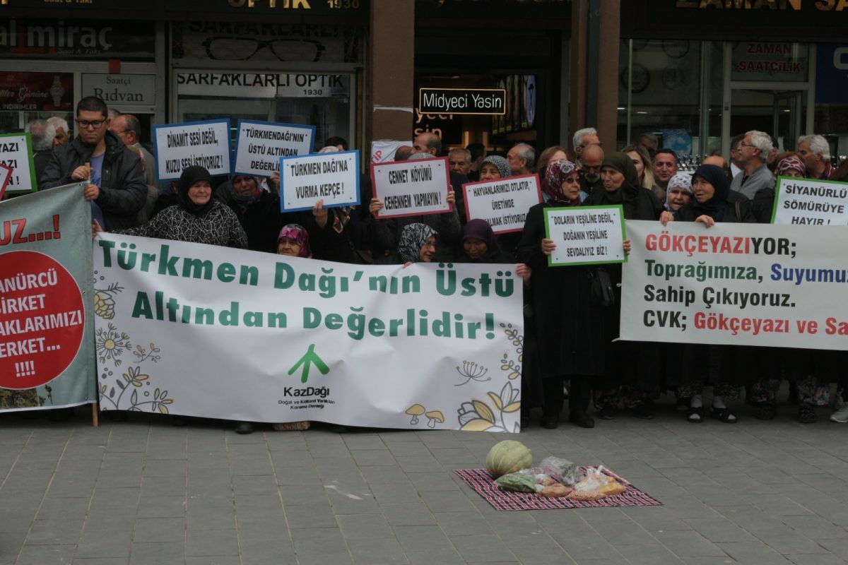 Türkmen Dağı Çevre Komitesi adına Gökçeyazı’da yaşayan köylülerin yaptığı basın açıklamasında altın madeninin bölgede yaratacağı tahribatın engellenme si için siyasilerden destek istendi. Yapılan açıklamada köylüler şunları söyledi: